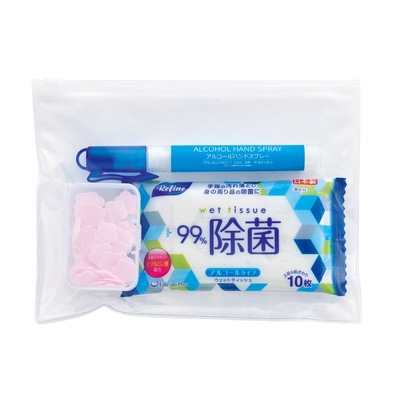 | その他 | <セット内容> アルコールハンドスプレー10ml×1・ケース入り紙石けん×1・除菌ポケットウェットティッシュ×1・収納ポーチ×1 |