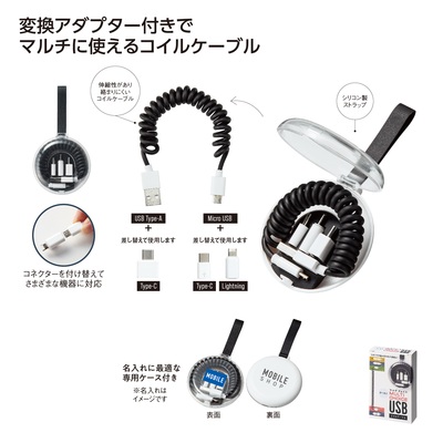 ケース付マルチチョイスUSBコイルケーブル [36535]