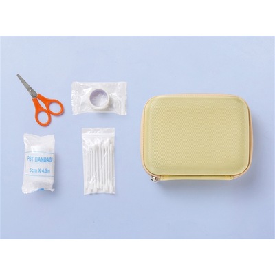 | 材質 | ケース/ポリエステル・ナイロン・EVA樹脂 綿棒/脱脂綿・ポリプロピレン サージカルテープ/ポリエステル PBT包帯/ポリブチレンテレフタレート ハサミ/ステンレス・ポリプロピレン |