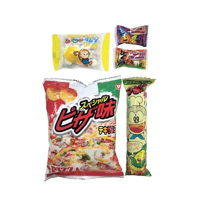 その他 | <セット内容> テキサスコーン スペシャルピザ味×1 うまい棒×1 あべっ子ラムネ×1 ハロウィンキャンディ×2 賞味期間/60日 |