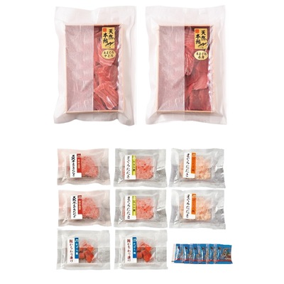 | その他 | <セット内容> 天然本マグロ中トロ切落し200g×1、天然本マグロ赤身切落し200g×1、本マグロたたき60g×2、南マグロたたき60g×2、びんちょう鮪たたき60g×2、目鉢マグロかちわり漬け60g×2、まぐろ丼たれ×6 賞味期間/6日 |