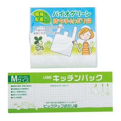 | その他 | <セット内容> ●USEキッチンパック10枚BOX×1 ●バイオグリーン持ち手付ポリ袋1枚×1 |