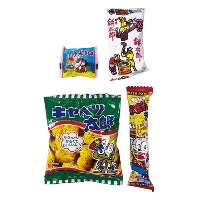 | その他 | <セット内容> うまい棒×1 キャベツ太郎×1 餅太郎×1 クッピーラムネ×1 賞味期間/50日 |