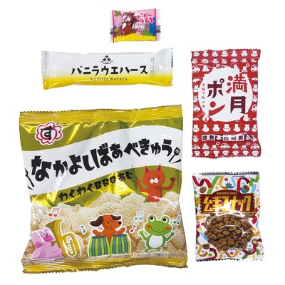 | その他 | <セット内容> なかよしばあべきゅう 満月ポン バニラウエハース ムギムギスナック クッピーラムネ(1粒) 賞味期間/50日 |