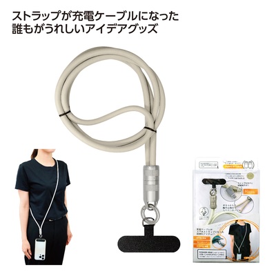 スマホ充電ケーブルストラップ ショルダータイプ ベージュ [36929BG]