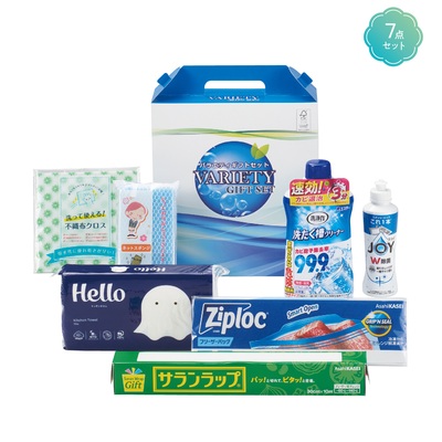| その他 | セット内容/ネットスポンジ・ジップロックフリーザーバッグLM各1枚・サランラップ30cm×10m・洗って使える!不織布クロス1枚・エステー洗濯槽クリーナー550ml・ジョイコンパクト170ml・ハローキッチンペーパー70枚 |