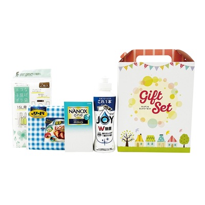 | その他 | <セット内容> ・エコな手提げポリ袋2枚入×1 ・ライオンNANOX one PRO(10g×2袋)×1 ・ライオンリードクッキングペーパー小4枚×1 ・P&G除菌ジョイコンパクト170ml(さわやか微香)×1 |