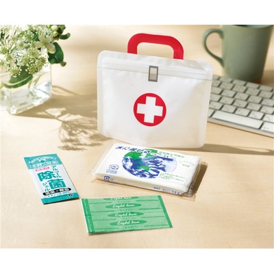 | サイズ | 本体サイズ/ジッパーポーチ/13.8×13.8cm 水に流せるペーパー8W/11×1×8cm アルコール除菌ジェル1.5ml/4×9.8cm 絆創膏5枚/6.5×8.6cm パッケージサイズ/16.5×1×14cm |